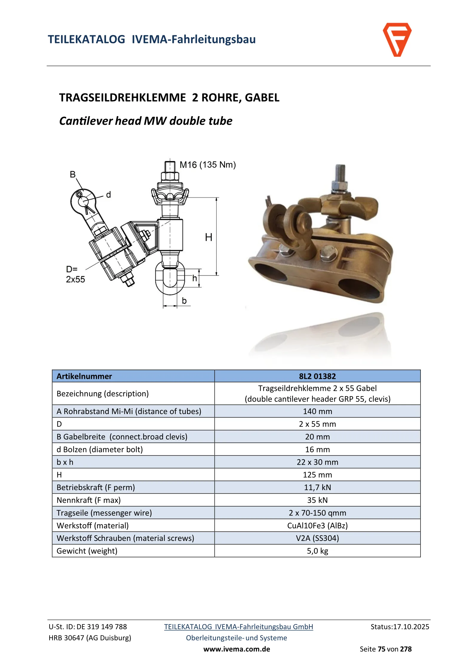Für Tragseile: 2x 50-150 qmm